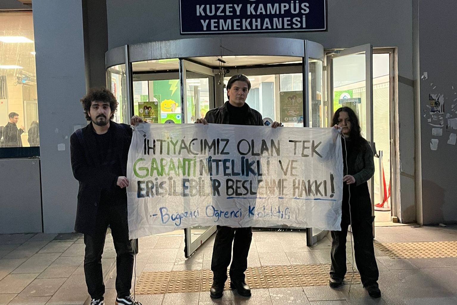 Boğaziçi Üniversitesi yemekhanesindeki banka kampanya afişlerini söktüler: “İhtiyacımız olan tek ‘garanti’ nitelikli ve erişilebilir beslenme hakkı”